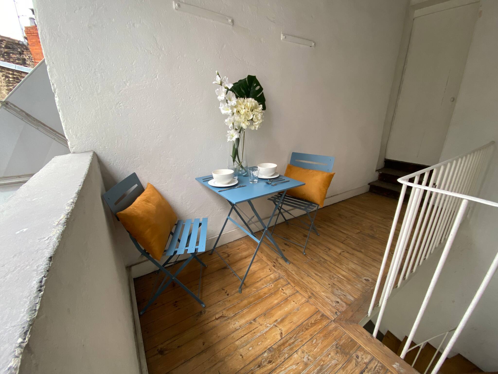 - un patio avec table de jardin et deux chaises pour profiter de la douceur du climat en toute tranquillité.