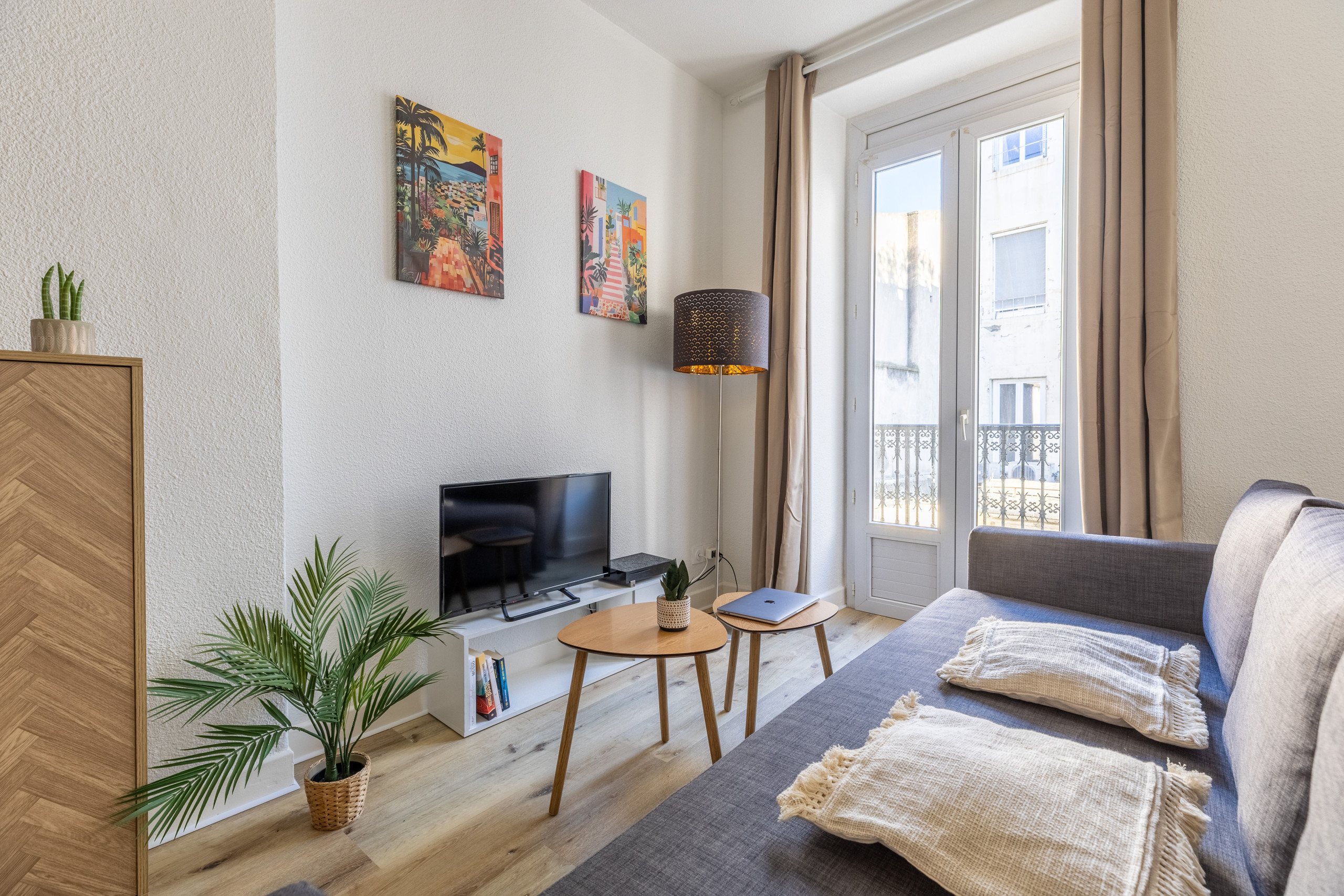 🛋️ L’espace salon dispose d’un canapé confortable et d’une TV. Profitez du balcon pour un moment de détente ou de lumière naturelle.