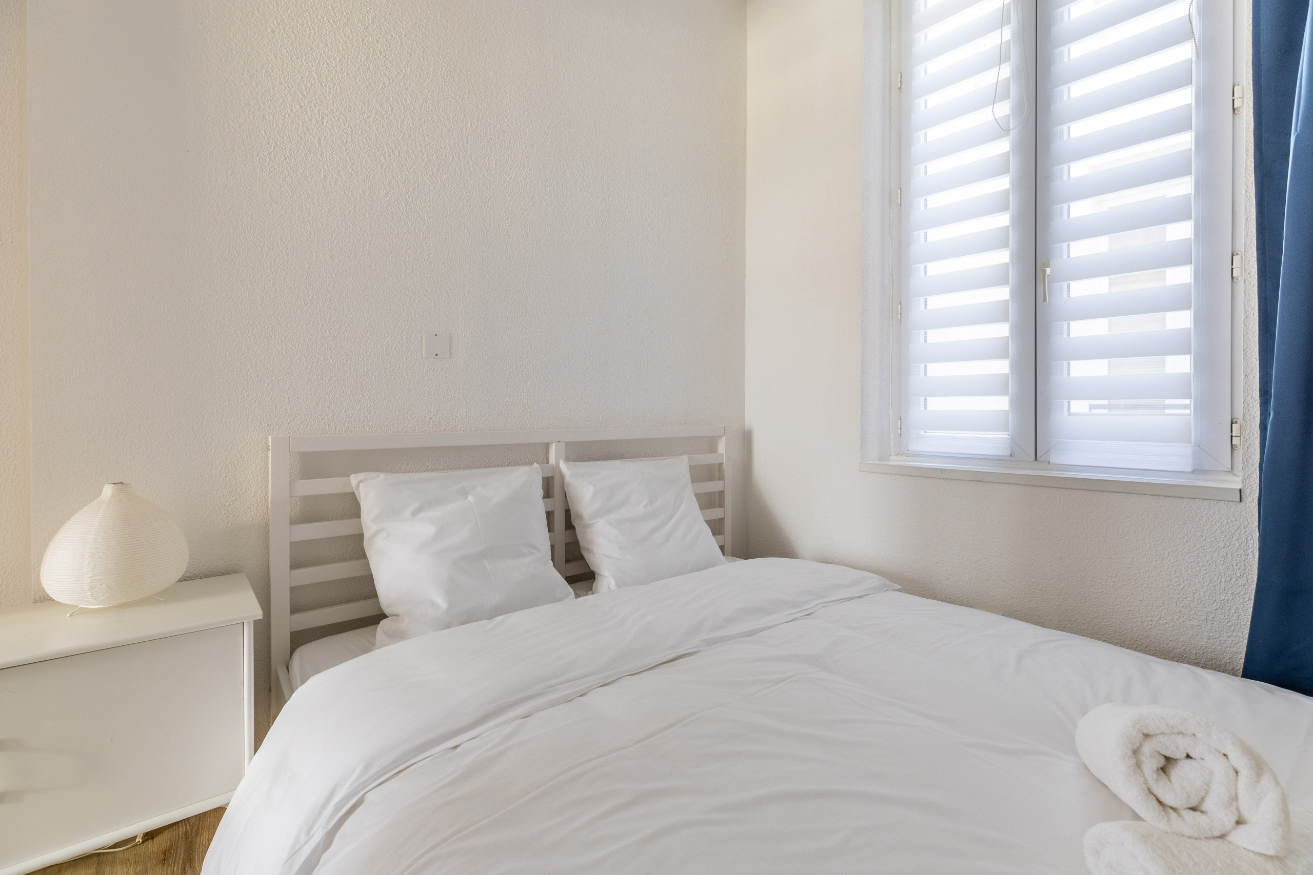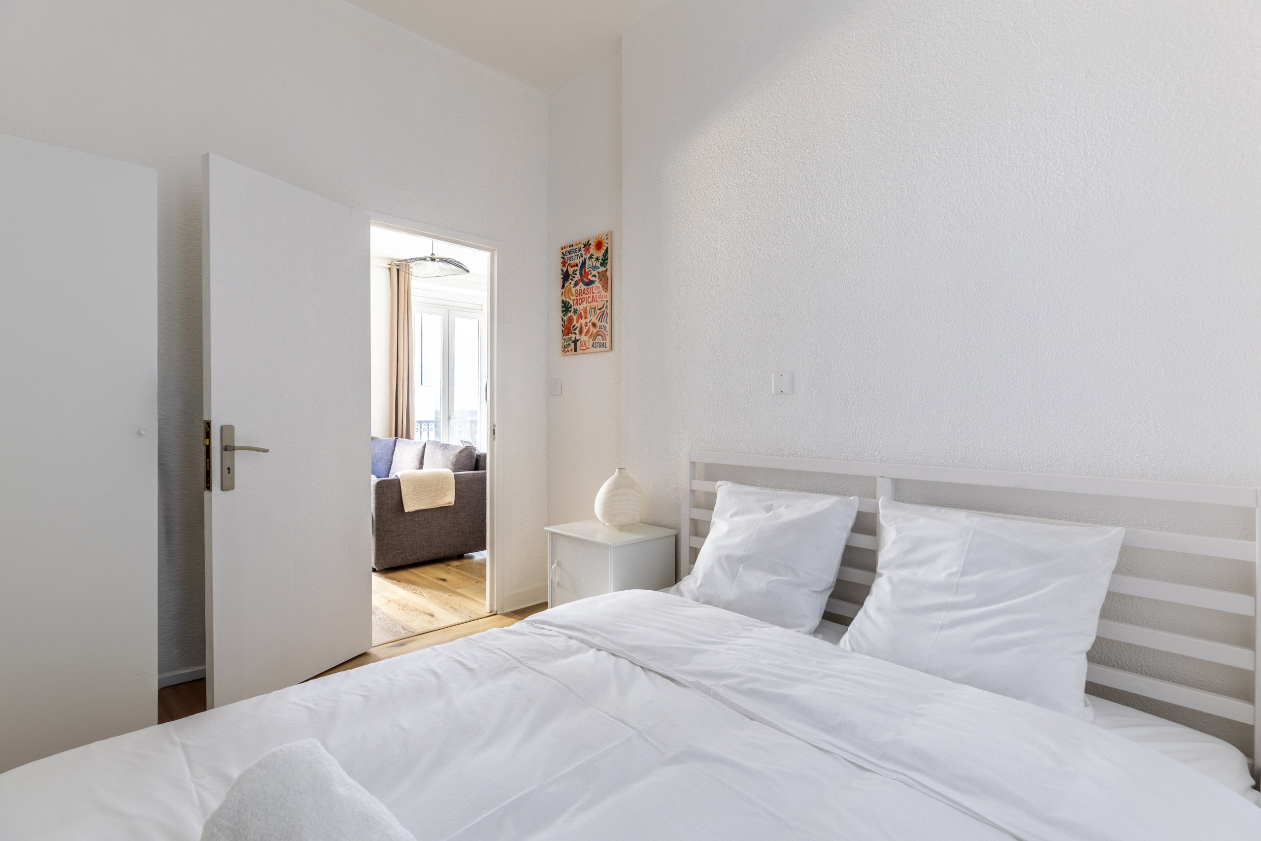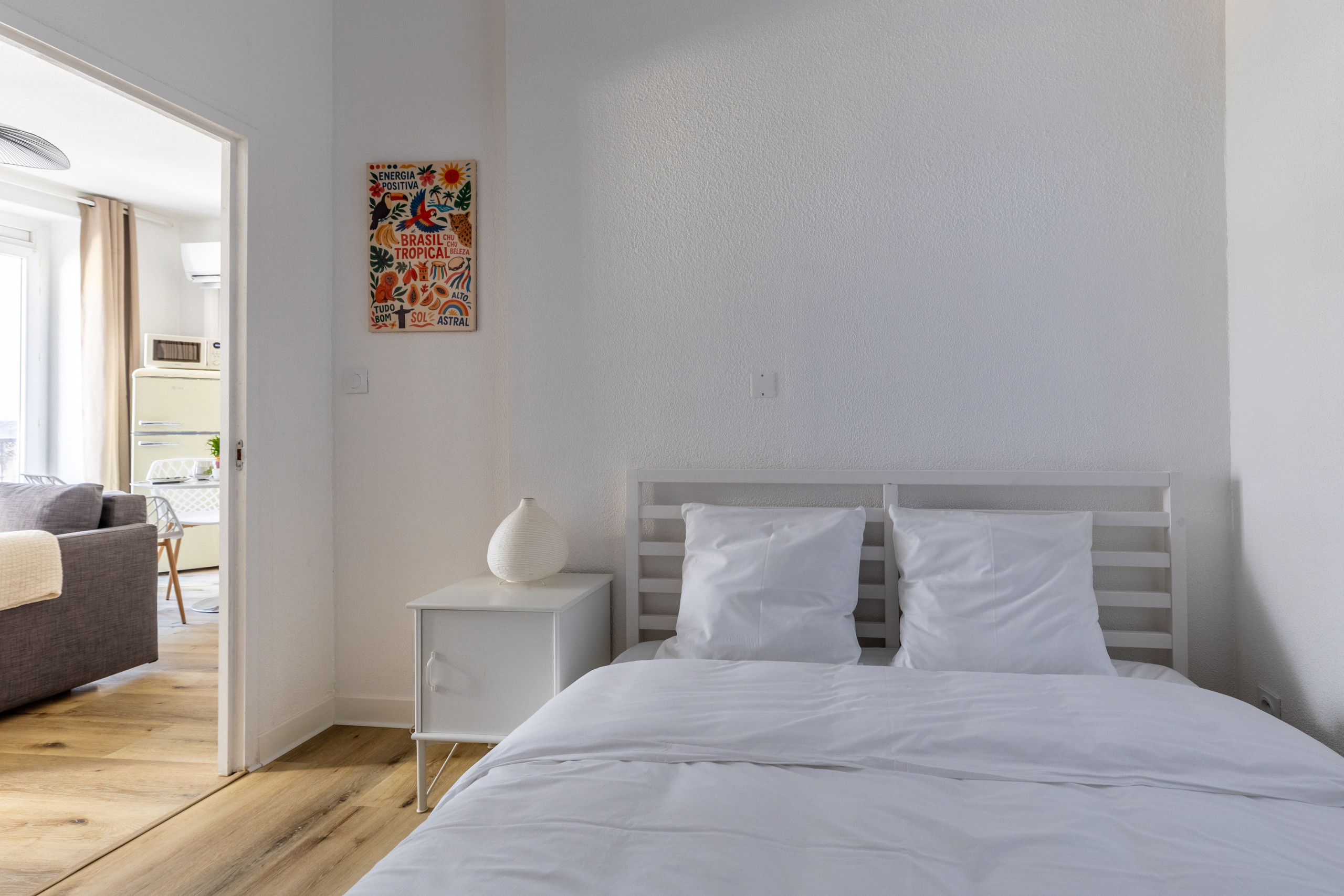 🛏️ La chambre comprend un lit double confortable et l’appartement peut accueillir jusqu’à 4 personnes (canapé convertible). Les matelas sont de qualité pour des nuits réparatrices et une grande armoire permet de ranger facilement toutes vos affaires.