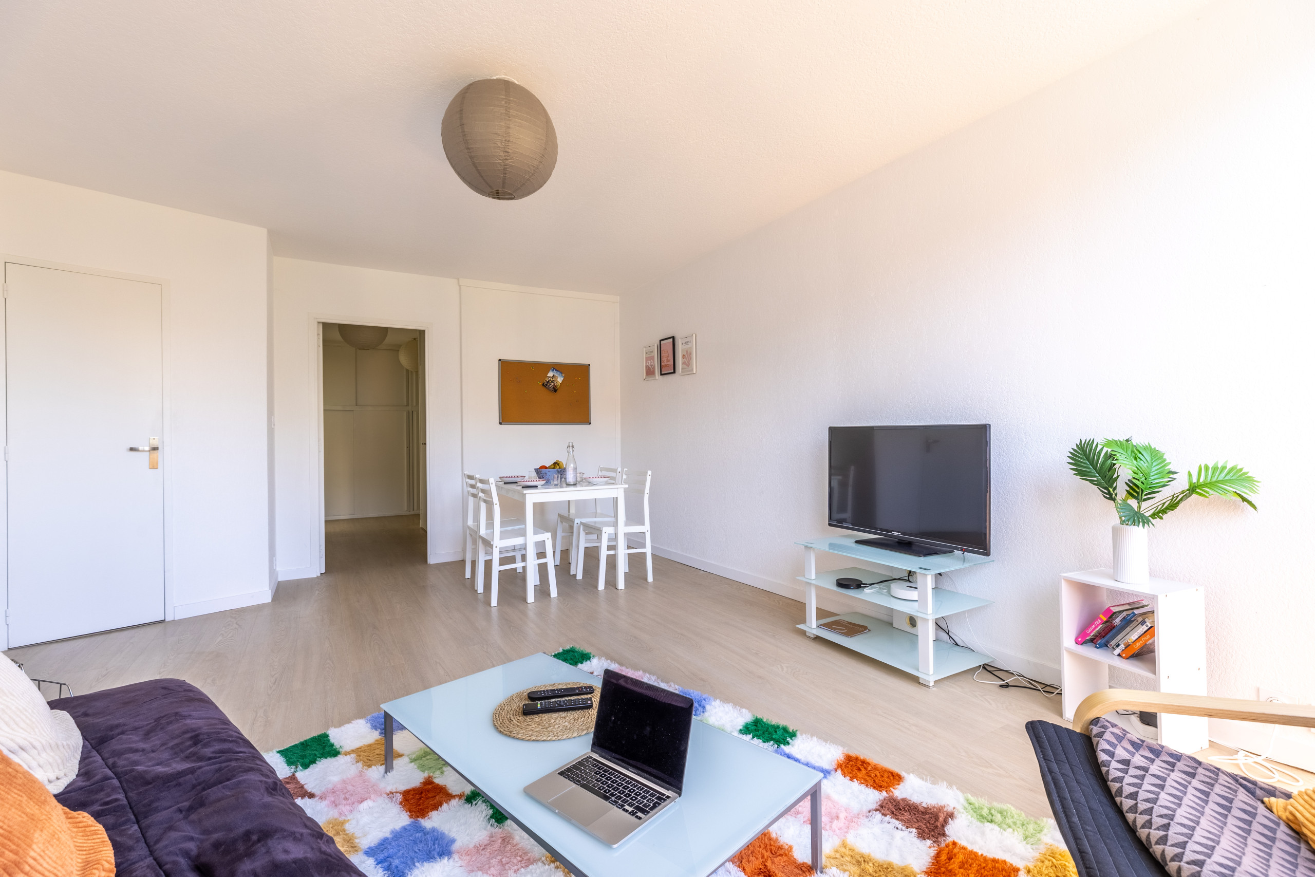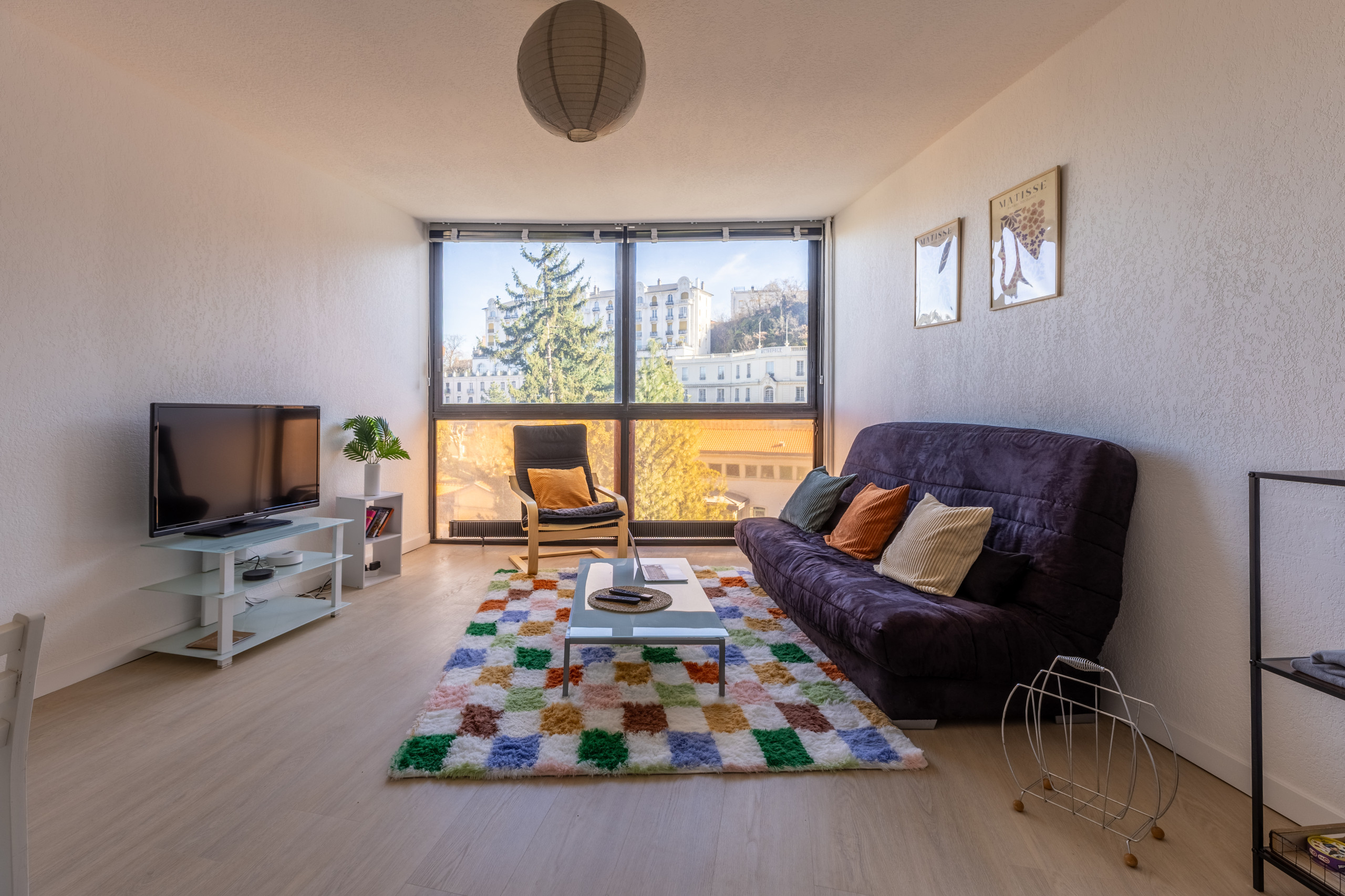 Séjournez dans cet appartement lumineux composé d'une chambre avec un grand lit, un salon avec canapé et TV .