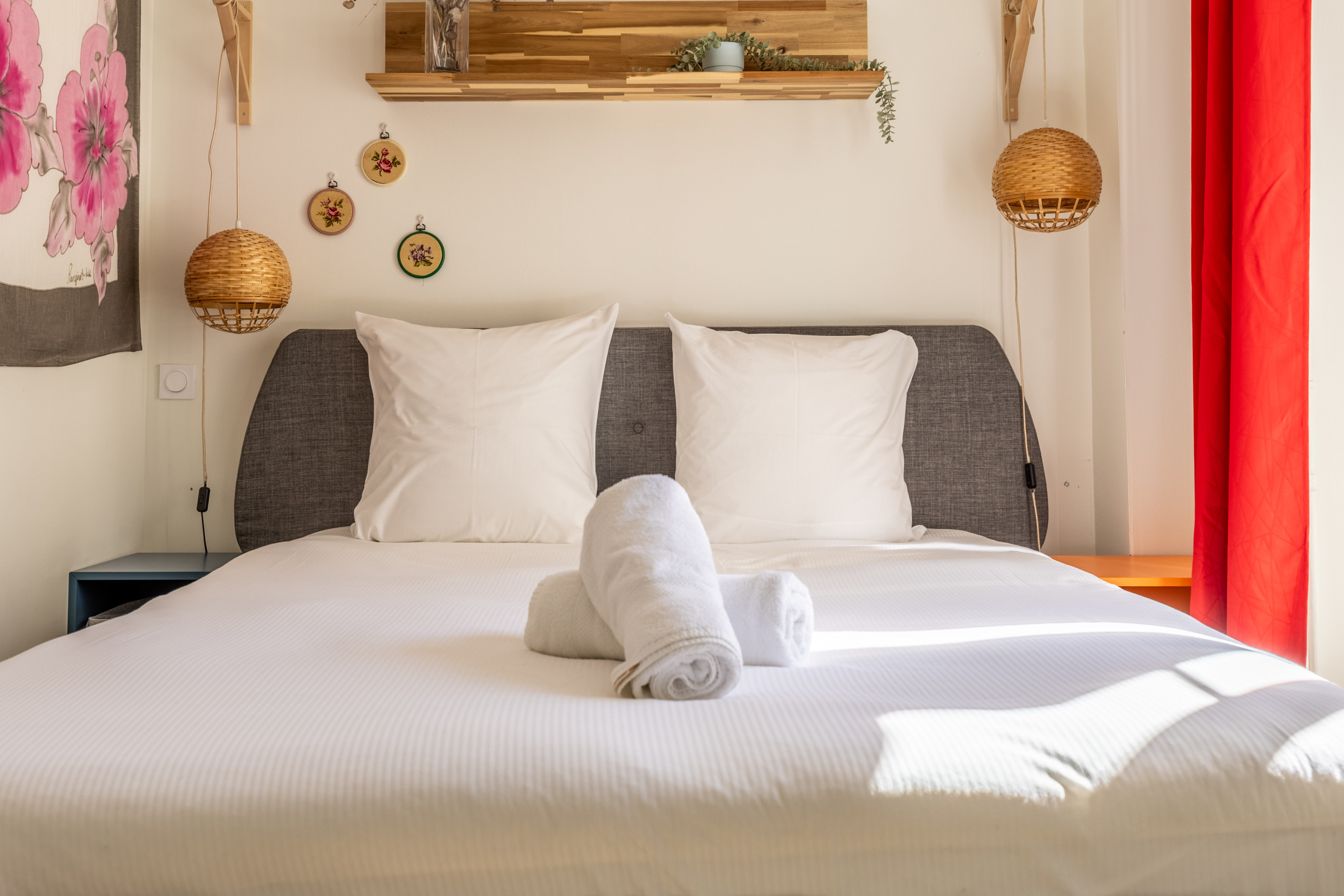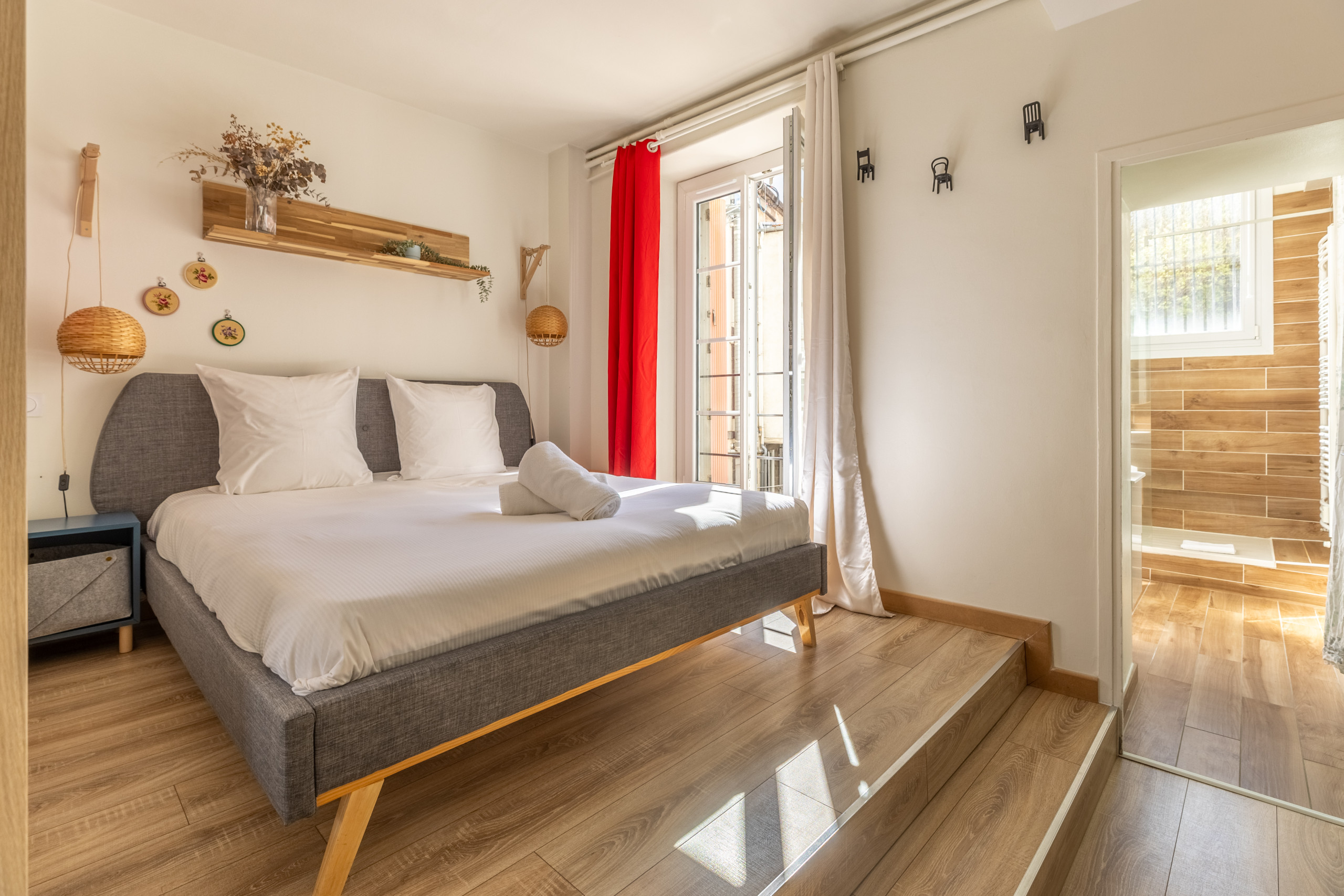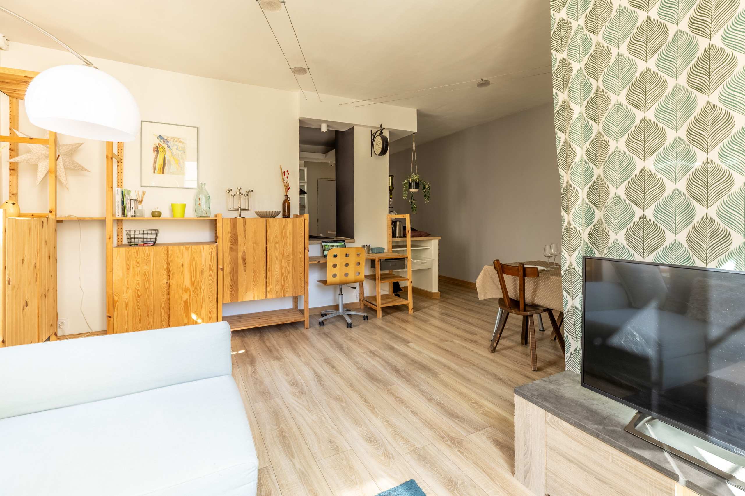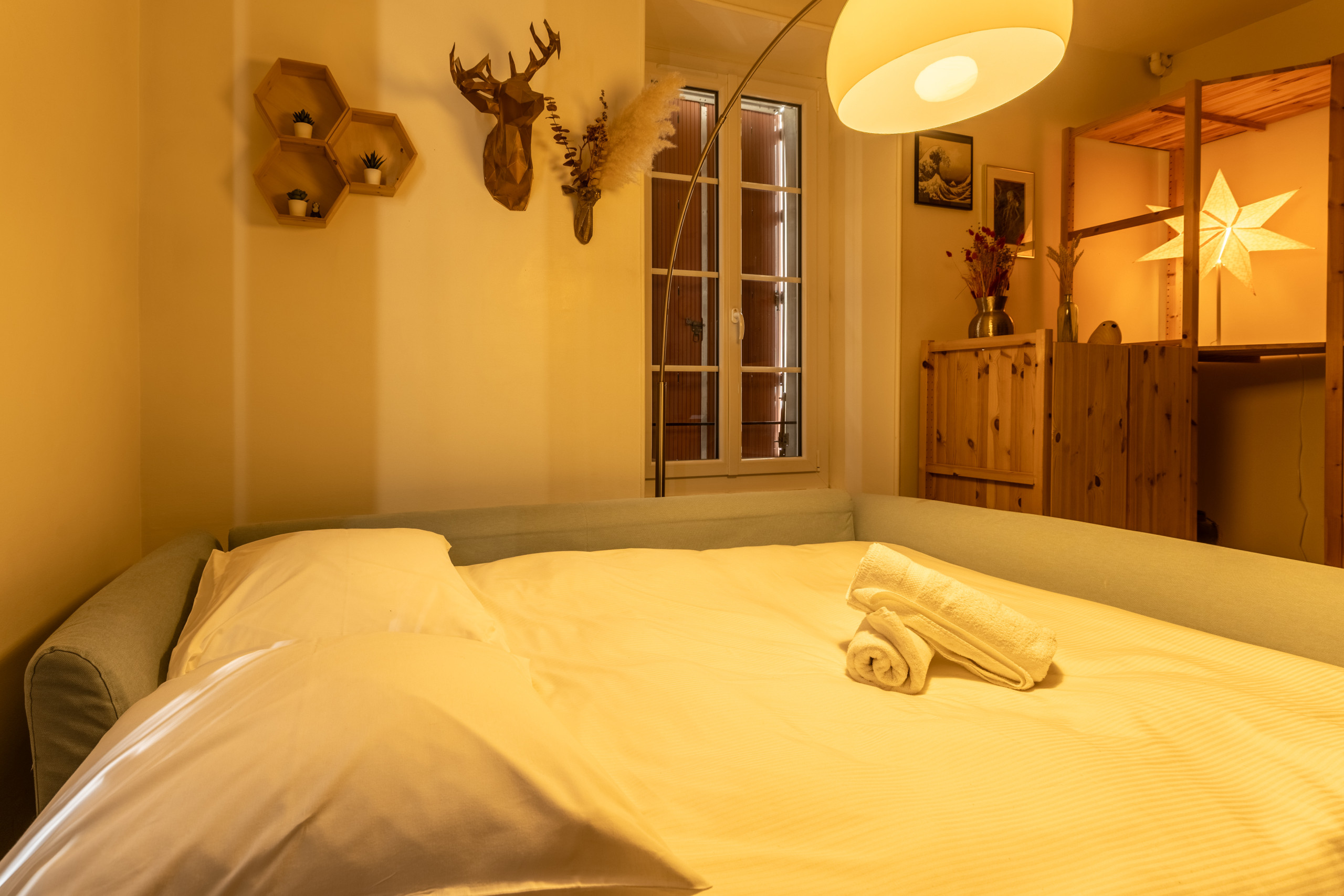 Ce logement cosy offre un espace de vie moderne et entièrement équipé. La chambre principale dispose d'un lit queen size confortable, complétée par un canapé-lit convertible, permettant d'accueillir jusqu'à 4 personnes.